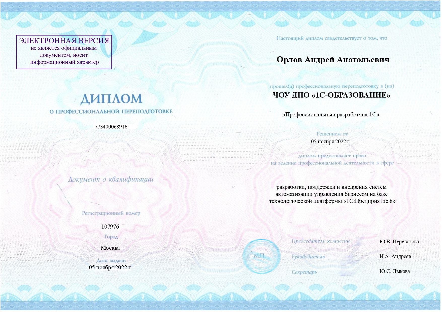 - Дипломированный разработчик 1C — профессиональная переподготовка