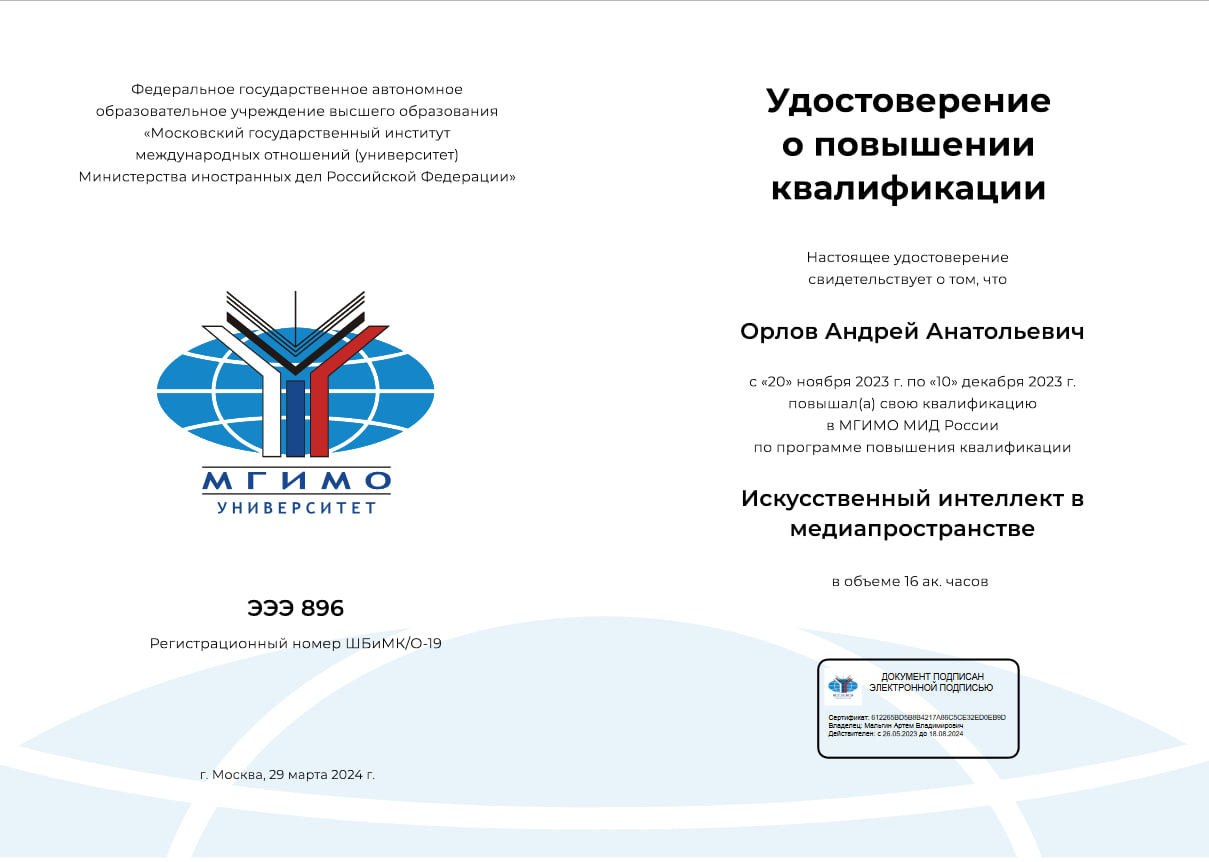 - МГИМО МИД РФ: искусственный интеллект в медиа-пространстве