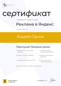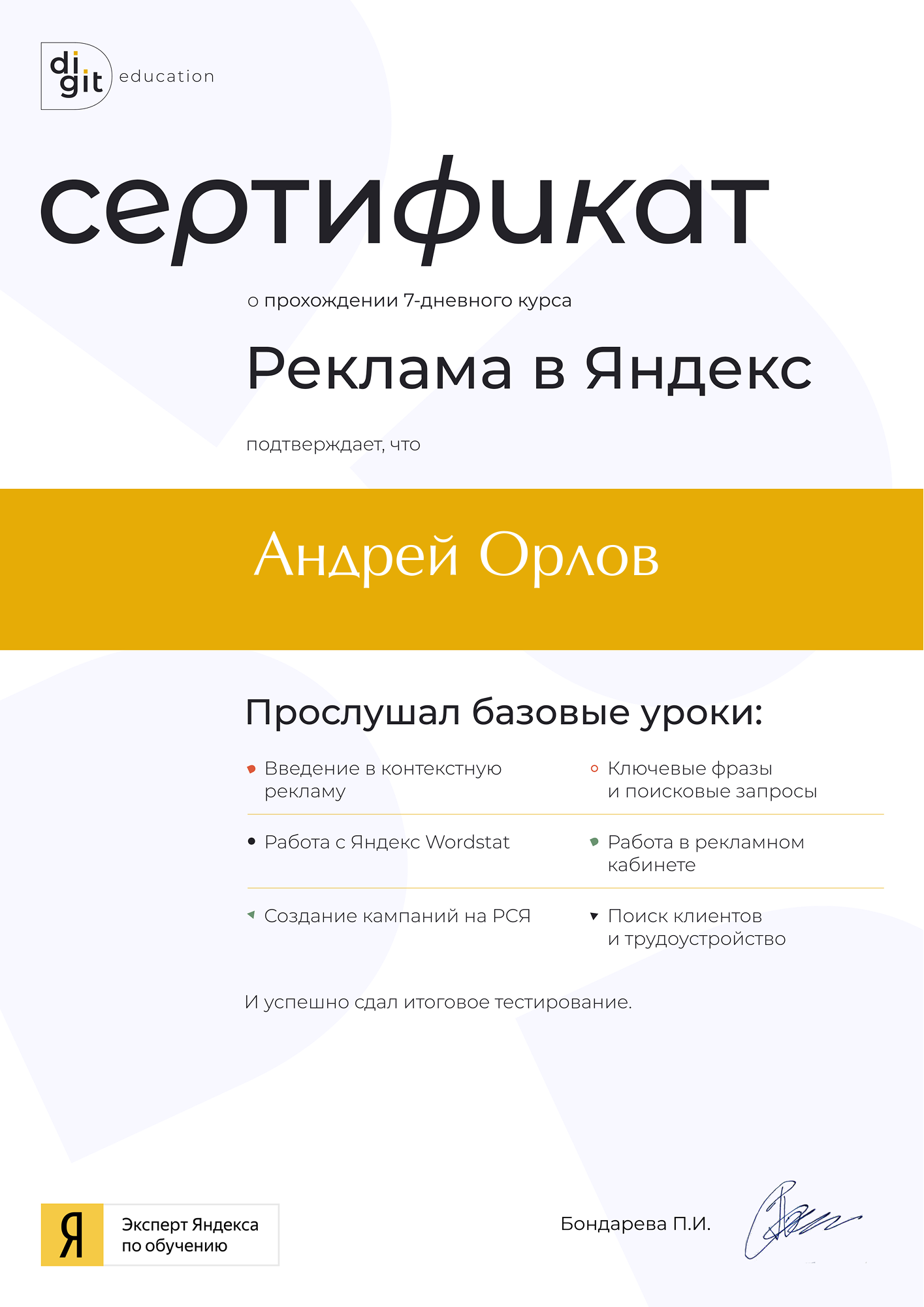 - Академия интернет-маркетинга: «Специалист по Яндекс.Директу»